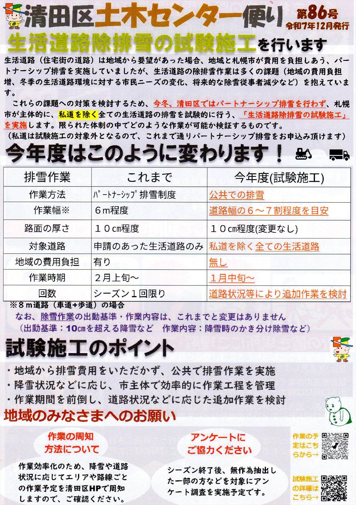 札幌市生活道路除排雪の試験施工の実施に伴う案内