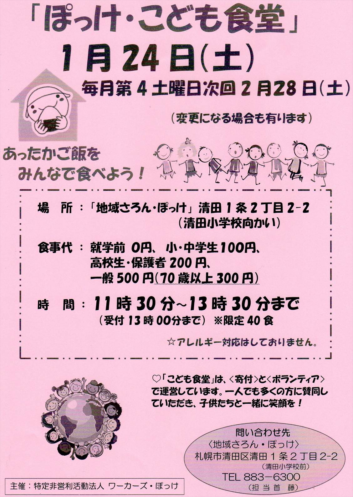 「ぽっか・こども食堂」 1月24日(土)