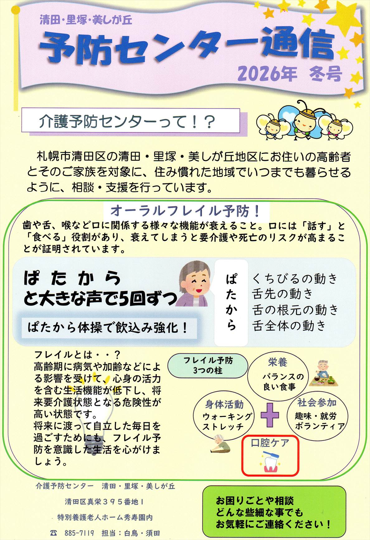 1月26日の回覧です。 2026年1月26日 最終更新日時 : 2026年1月29日 MZ清田地区モルック体験会のご案内 Fun×Funスポーツinきよた その困りごとまず相談してみませんか きのたんメール 冬号 きよたタウン 2026 予防センター通信 2026年 冬号