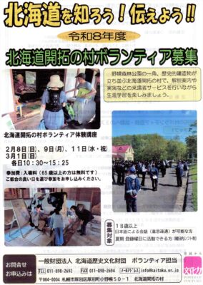 にじいろ通信 令和8年1月30日 第10号 北海道開拓の村ボランティア募集 令和8年度 「ぽっけ・こども食堂」2月28日(土) 第105回地域健康セミナー あしりべつ郷土館だより 第9号 清真健友会ニュース 2月号 過去 […]